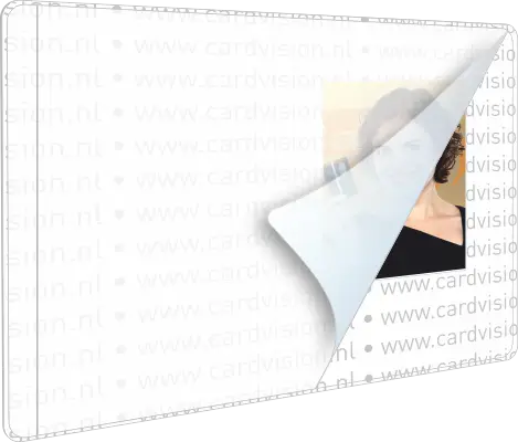 Een transparante vinyl sticker welke kan worden gebruikt om op eenvoudige wijze een pasfotokaart te maken.