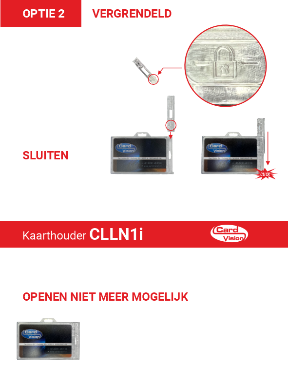 De kaarthouder wordt permanent vergrendeld zonder mogelijkheid tot heropening.