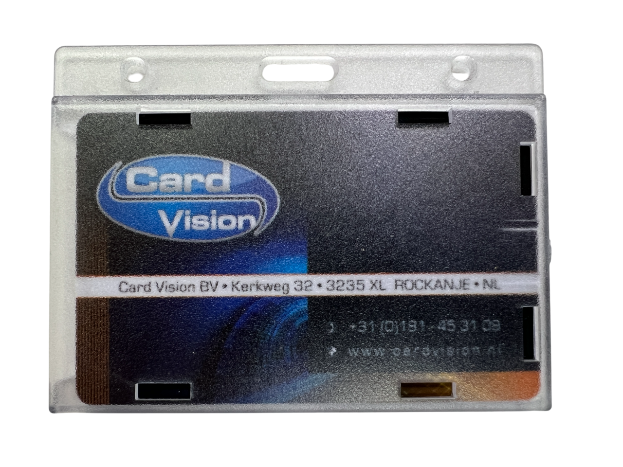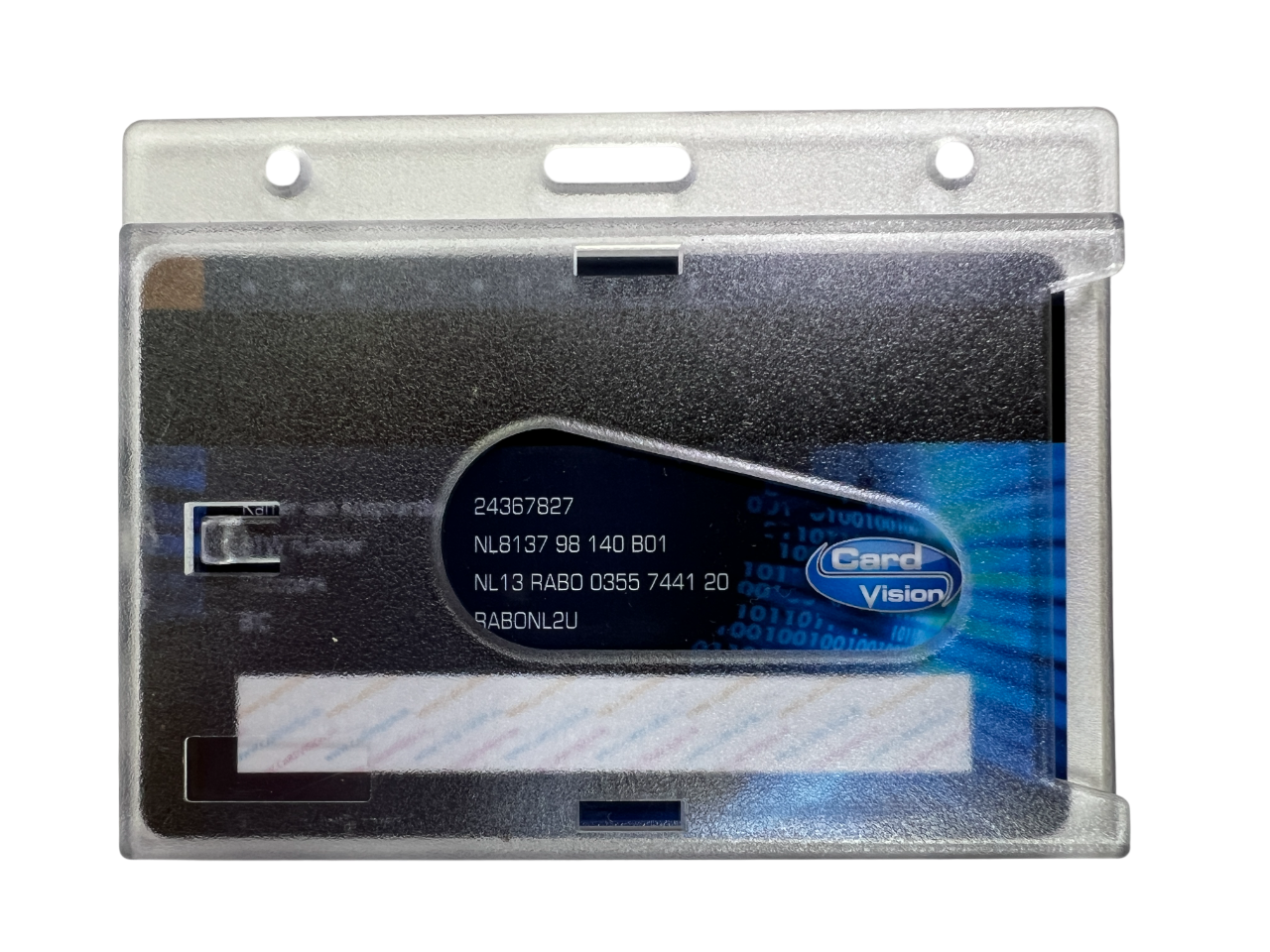 Deze matte hardplastic kaarthouder is ontworpen voor één plastic kaart in bankpasformaat en heeft een liggende (landscape) lay-out. Dankzij de bevestigingsmogelijkheden kan de kaart zichtbaar worden gedragen, waardoor deze altijd snel en eenvoudig binnen handbereik is.